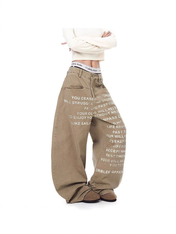 Quần ống rộng kaki chữ in tại Nagie Shop là item không thể thiếu cho những cô nàng theo đuổi phong cách streetwear và Y2K.