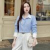 áo sơ mi kẻ sọc hồng pastel thanh lịch, nữ tính