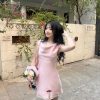 Thiết kế trễ vai kết hợp cổ bẻ tạo điểm nhấn tinh tế, giúp khoe bờ vai và phần cổ thanh thoát.